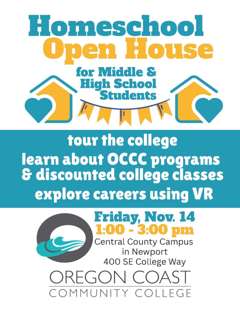 Homeschool students are invited to OCCC’s Homeschool Open House on Friday, November 14 from 1:00-3:00 pm.
