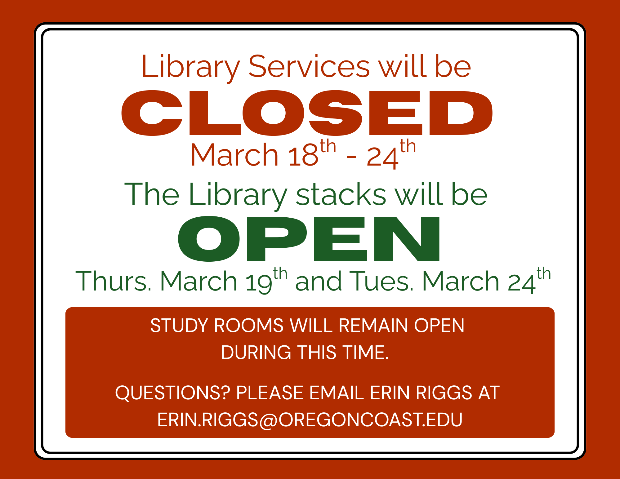 • By email at library.services@oregoncoast.edu